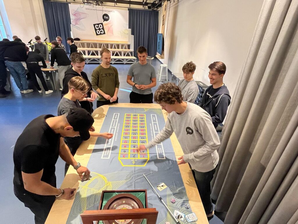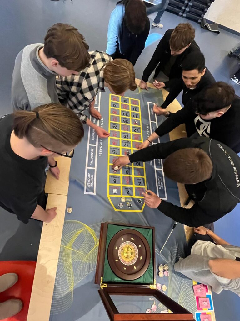 In einem zweistündigen Workshop wurde die Theorie auf sehr unterhaltsame Weise mit der Praxis verbunden: Rollen wurden zugeteilt, schwere körperliche Arbeit mittels Ergometern, Medizinbällen und Körpergewichten erlebbar gemacht und finanzielles Risiko durch Investitionen am Roulette-Tisch bewusst vermittelt.