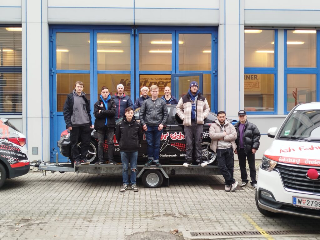 Ein besonderes Highlight des Projekts war die abschließende Testfahrt des reparierten Fahrzeugs. Die Schüler hatten dabei die Möglichkeit, ihre Arbeit unter realistischen Bedingungen auf dem ARBÖ-Fahrsicherheitsübungsplatz zu überprüfen. Unter der fachkundigen Anleitung von Chefinstruktor Daniel Lindinger wurden verschiedene Manöver und Fahrsituationen simuliert, um sicherzustellen, dass das Fahrzeug den Anforderungen für Fahrtechnikkurse vollumfänglich entsprach.